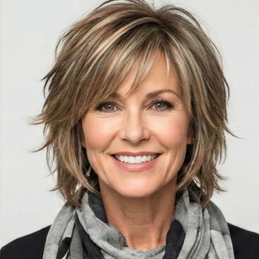 Cropped with choppy layers. Pioneered circa 1960 by foremost stylists and style icons, it enjoys peaks and troughs in popularity. Find many stars of stage and screen sporting pixie derivatives making it one of the most desirable cuts today.